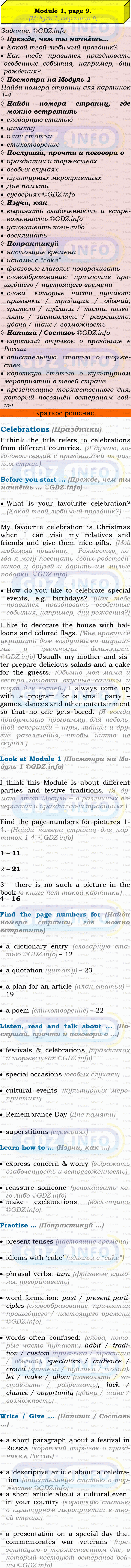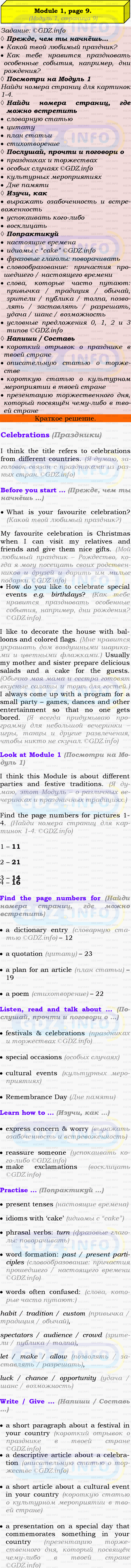 Ответ на Module 1, Страница 9, Celebrations из ГДЗ по Английскому языку 9 класс: Ваулина (Учебник Spotlight)