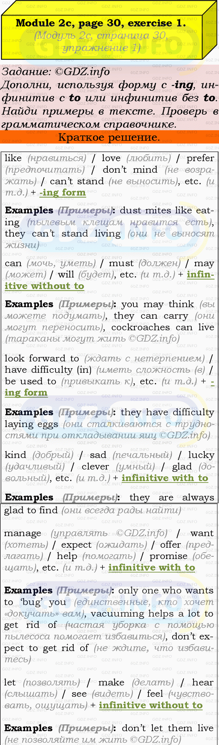 ГДЗ (готовое домашние задание из решебника) по Английскому языку 9 класса авторов Ю.Е. Ваулина, Просвещение, 2010/2019/2023г. на Module 2, Страница 30-31, Номер 1. 2c Grammar in Use.Условие 2023 г.