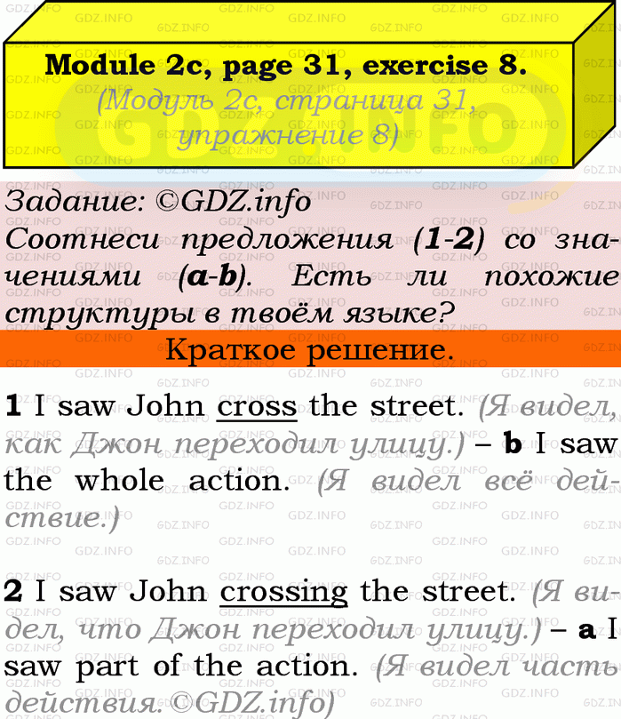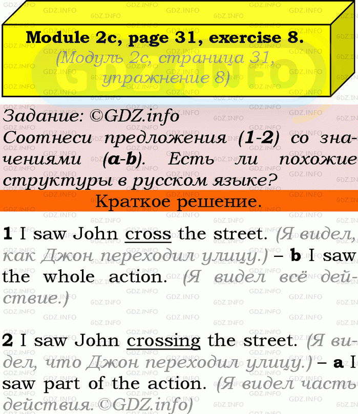 ГДЗ (готовое домашние задание из решебника) по Английскому языку 9 класса авторов Ю.Е. Ваулина, Просвещение, 2010/2019/2023г. на Module 2, Страница 30-31, Номер 8. 2c Grammar in Use.Условие 2023 г.