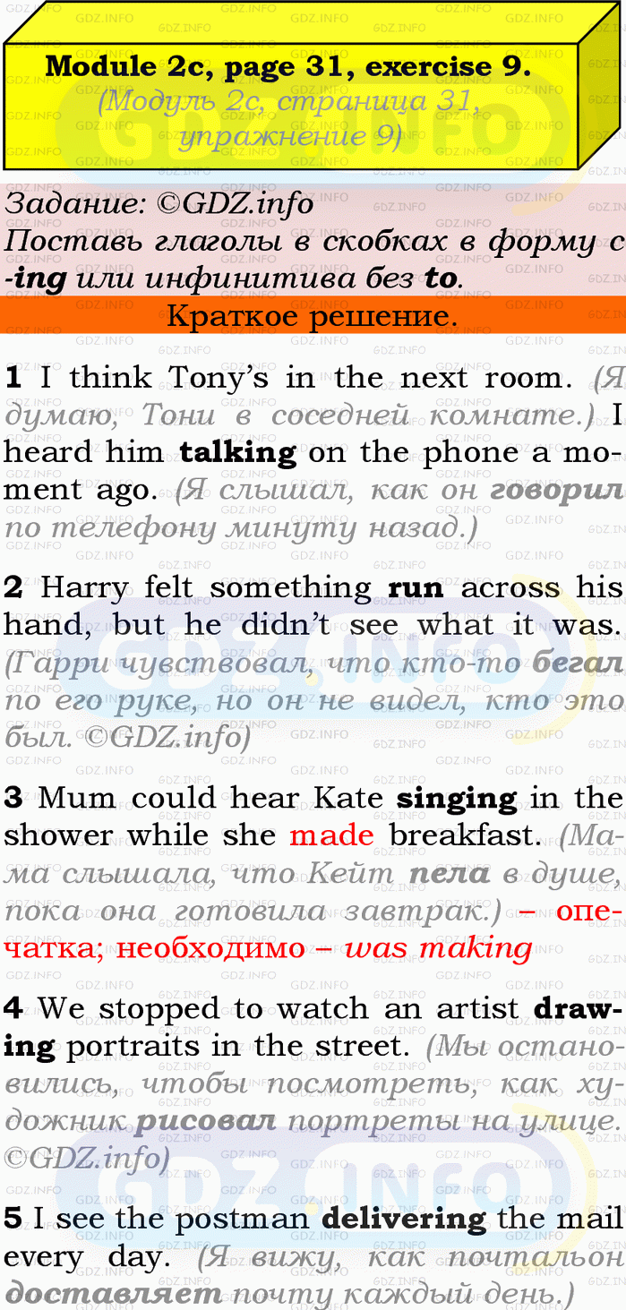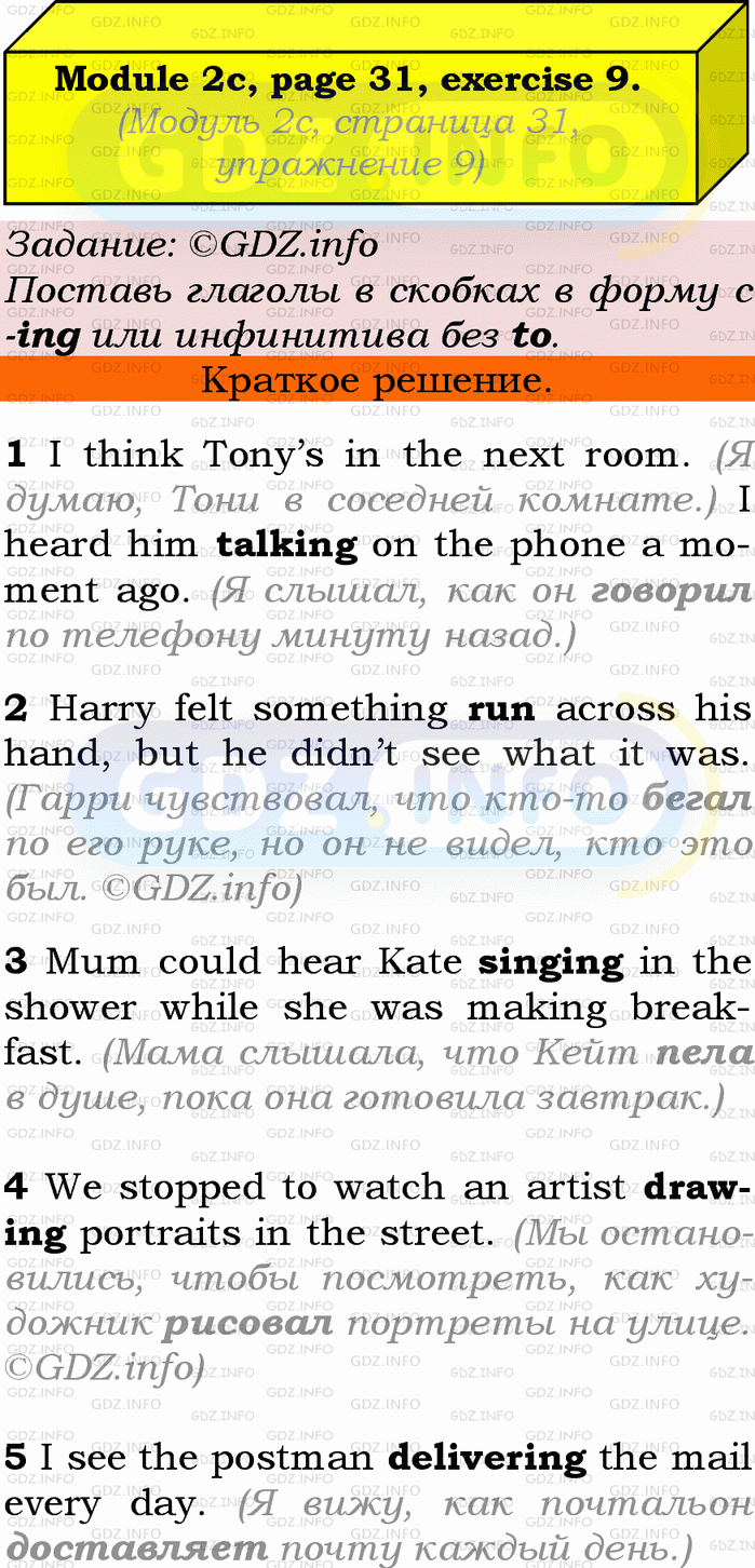 ГДЗ (готовое домашние задание из решебника) по Английскому языку 9 класса авторов Ю.Е. Ваулина, Просвещение, 2010/2019/2023г. на Module 2, Страница 30-31, Номер 9. 2c Grammar in Use.Условие 2023 г.