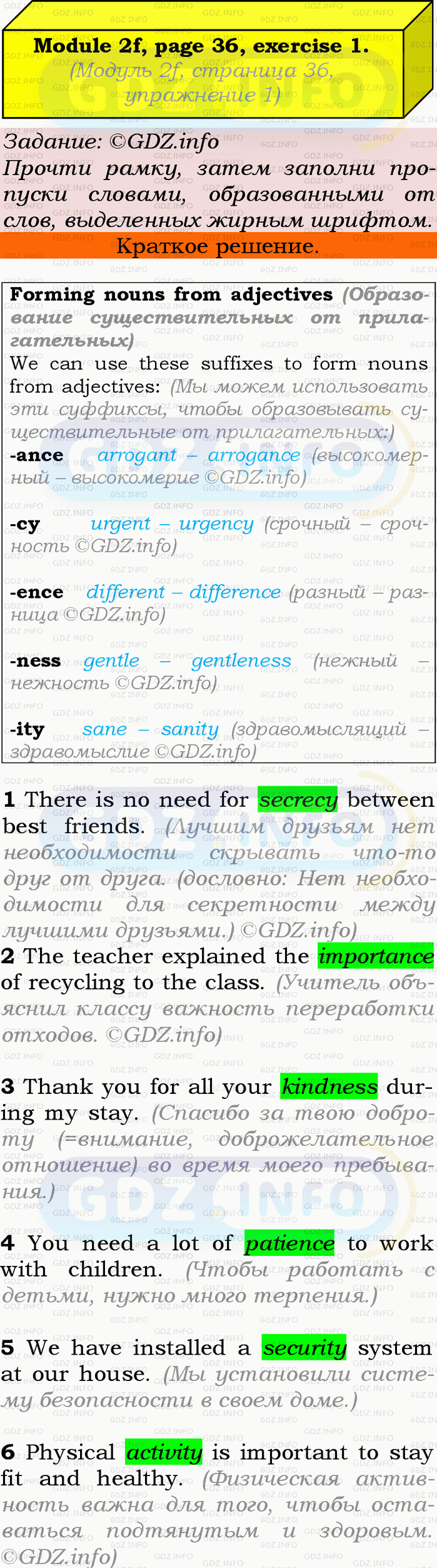 ГДЗ (готовое домашние задание из решебника) по Английскому языку 9 класса авторов Ю.Е. Ваулина, Просвещение, 2010/2019/2023г. на Module 2, Страница 36, Номер 1. 2f English in Use.Условие 2023 г.