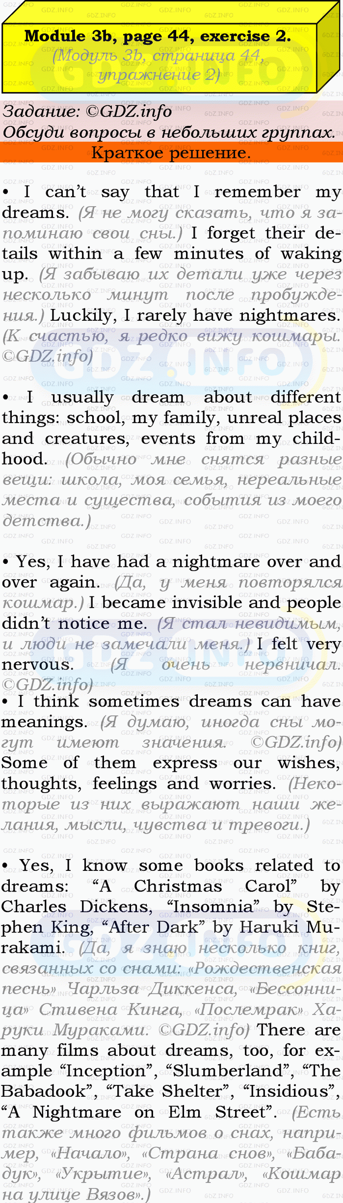 Ответ на Module 3, Страница 44-45, Номер 2 из ГДЗ по Английскому языку 9 класс: Ваулина (Учебник Spotlight)
