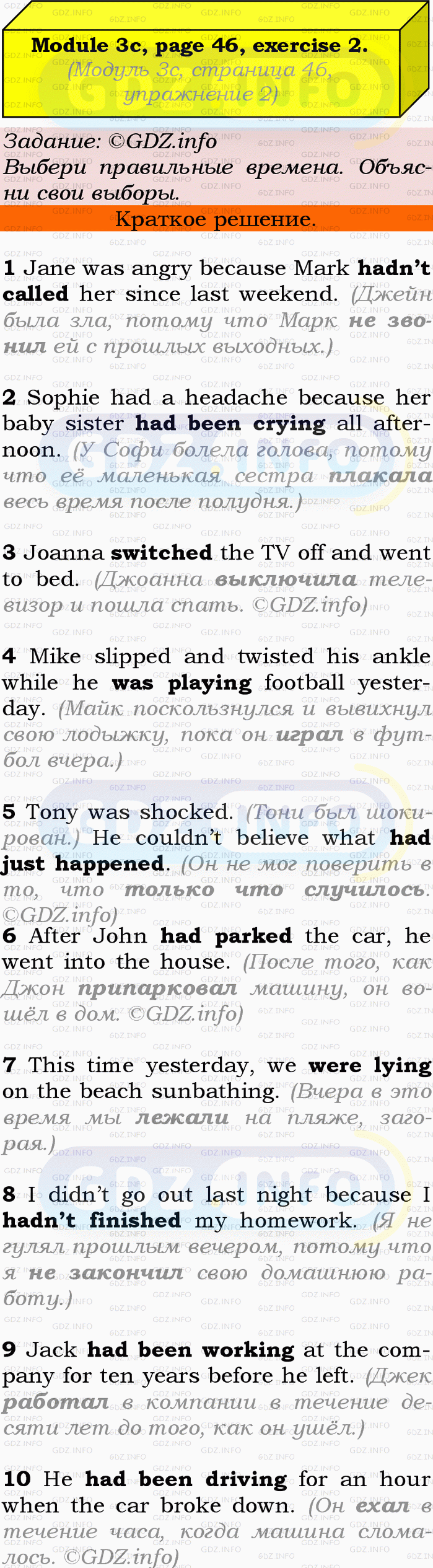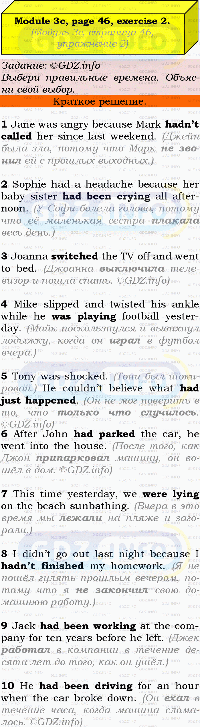 ГДЗ (готовое домашние задание из решебника) по Английскому языку 9 класса авторов Ю.Е. Ваулина, Просвещение, 2010/2019/2023г. на Module 3, Страница 46-47, Номер 2. 3c Grammar in Use.Условие 2023 г.