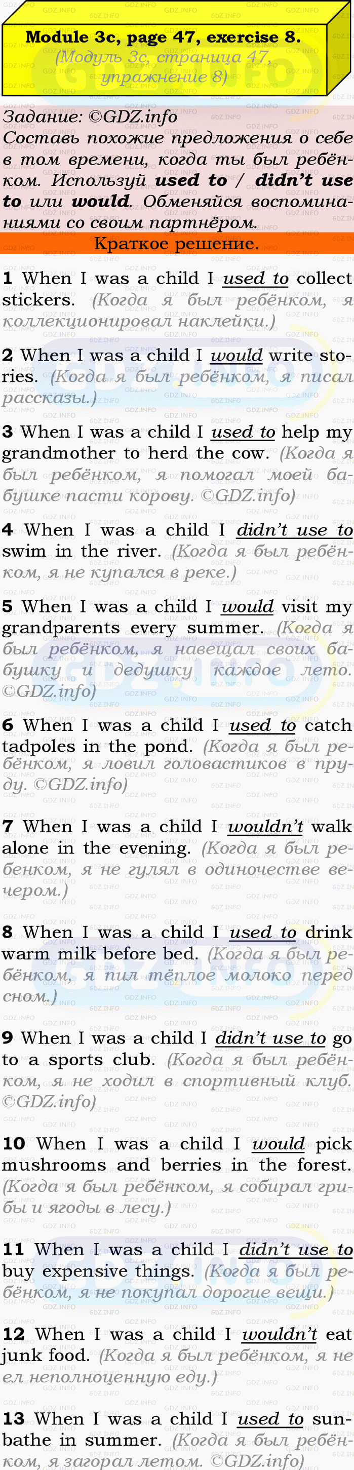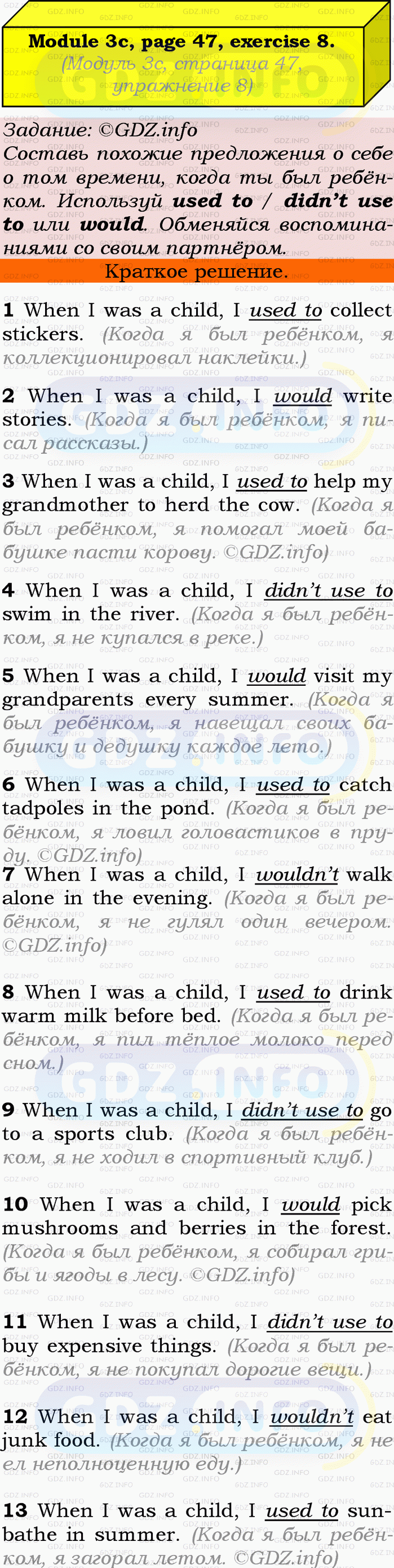 ГДЗ (готовое домашние задание из решебника) по Английскому языку 9 класса авторов Ю.Е. Ваулина, Просвещение, 2010/2019/2023г. на Module 3, Страница 46-47, Номер 8. 3c Grammar in Use.Условие 2023 г.