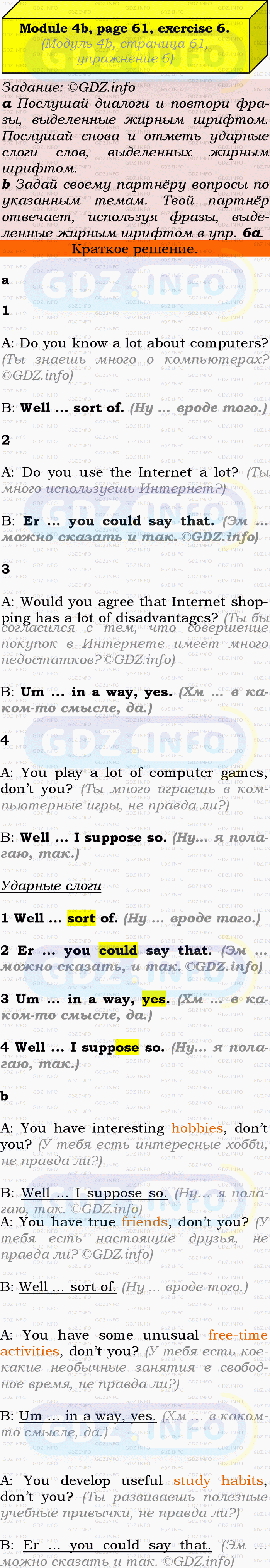 ГДЗ (готовое домашние задание из решебника) по Английскому языку 9 класса авторов Ю.Е. Ваулина, Просвещение, 2010/2019/2023г. на Module 4, Страница 60-61, Номер 6. 4b Listening & Speaking.Условие 2023 г.