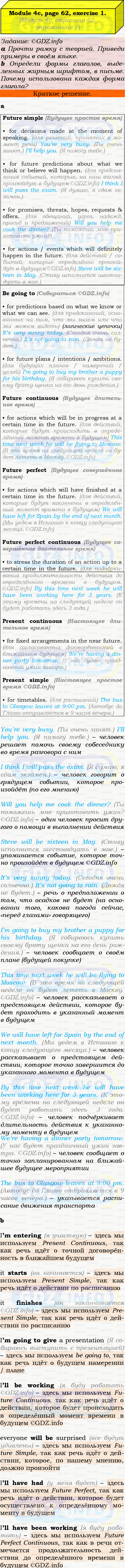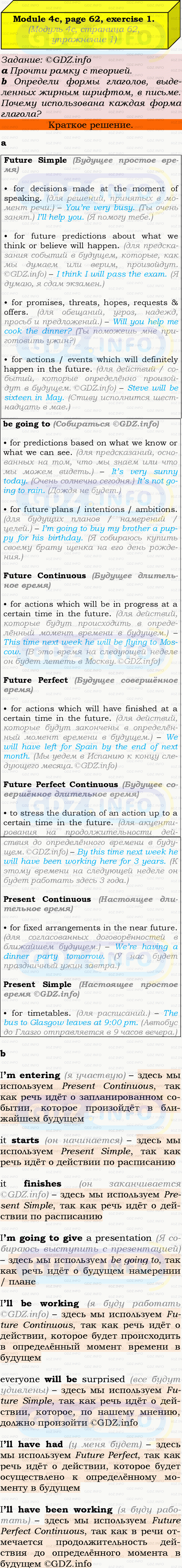ГДЗ (готовое домашние задание из решебника) по Английскому языку 9 класса авторов Ю.Е. Ваулина, Просвещение, 2010/2019/2023г. на Module 4, Страница 62-63, Номер 1. 4c Grammar in Use.Условие 2023 г.