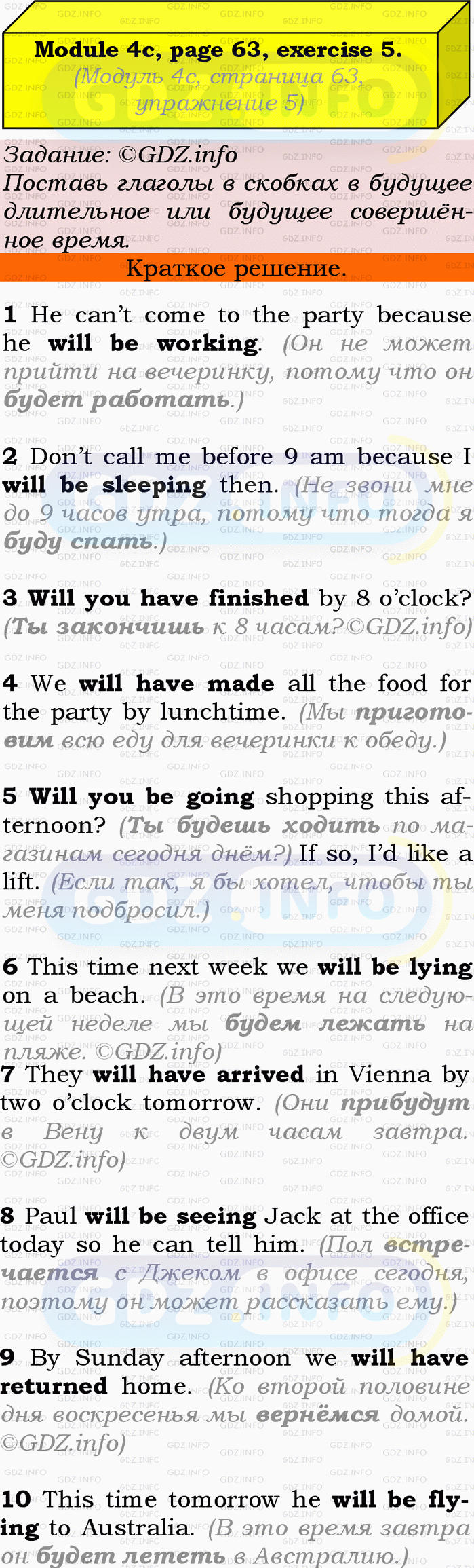ГДЗ (готовое домашние задание из решебника) по Английскому языку 9 класса авторов Ю.Е. Ваулина, Просвещение, 2010/2019/2023г. на Module 4, Страница 62-63, Номер 5. 4c Grammar in Use.Условие 2023 г.