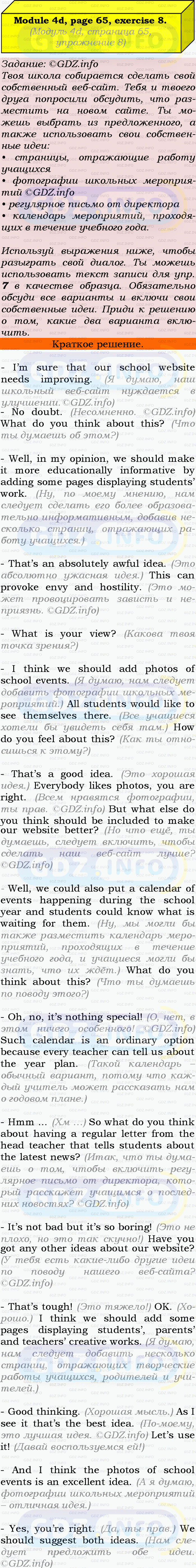 ГДЗ (готовое домашние задание из решебника) по Английскому языку 9 класса авторов Ю.Е. Ваулина, Просвещение, 2010/2019/2023г. на Module 4, Страница 64-65, Номер 8. 4d Vocabulary & Speaking.Условие 2023 г.