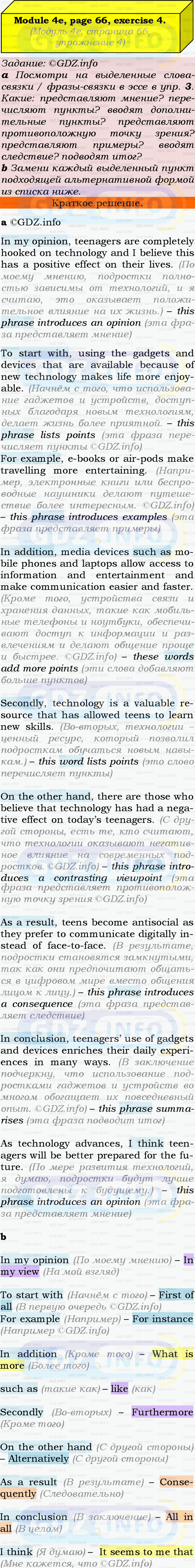ГДЗ (готовое домашние задание из решебника) по Английскому языку 9 класса авторов Ю.Е. Ваулина, Просвещение, 2010/2019/2023г. на Module 4, Страница 66-67, Номер 4. 4e Writing Skills.Условие 2023 г.