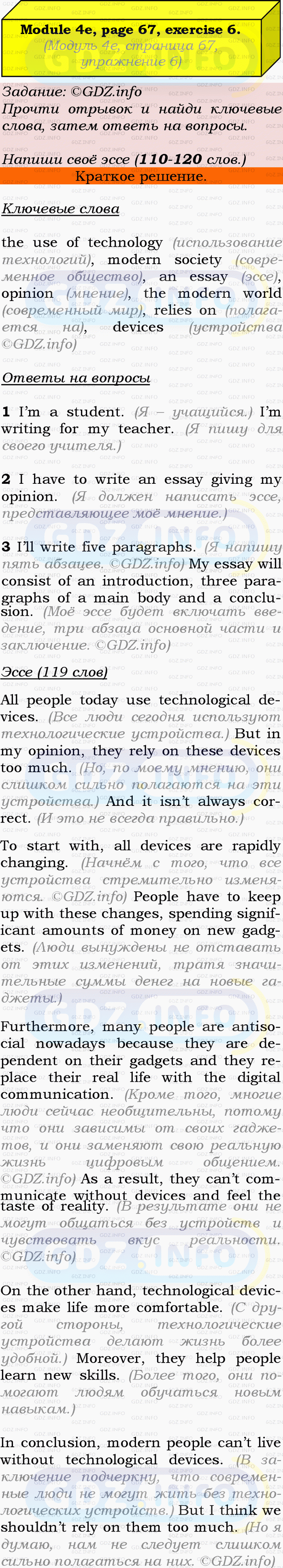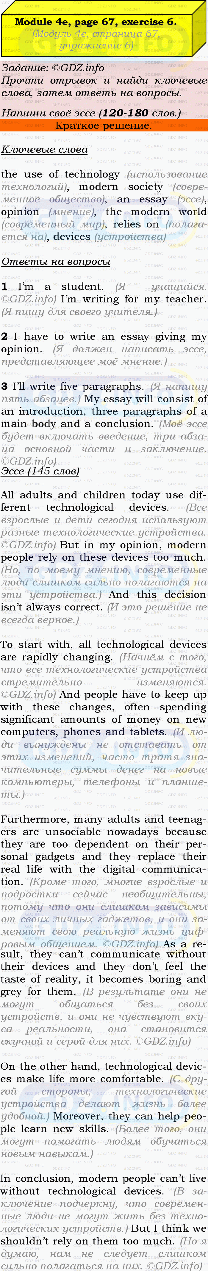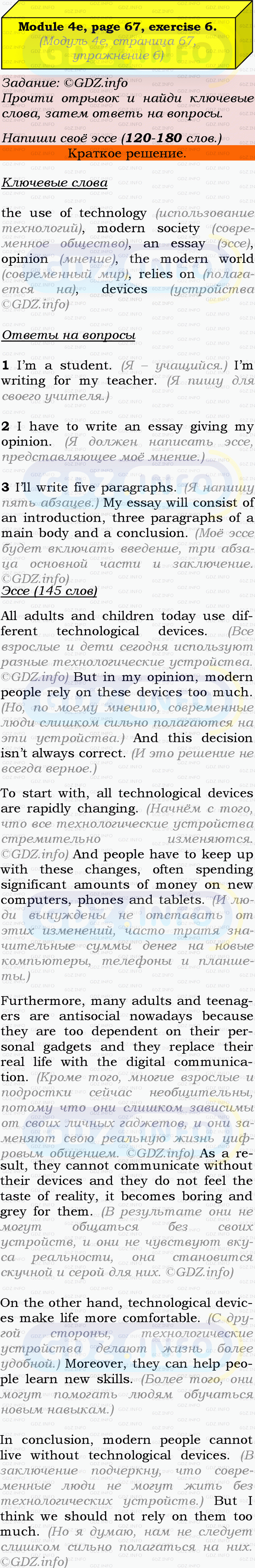 ГДЗ (готовое домашние задание из решебника) по Английскому языку 9 класса авторов Ю.Е. Ваулина, Просвещение, 2010/2019/2023г. на Module 4, Страница 66-67, Номер 6. 4e Writing Skills.Условие 2023 г.