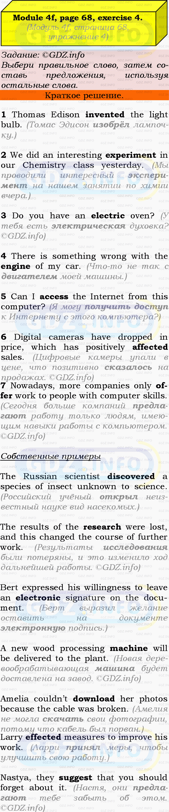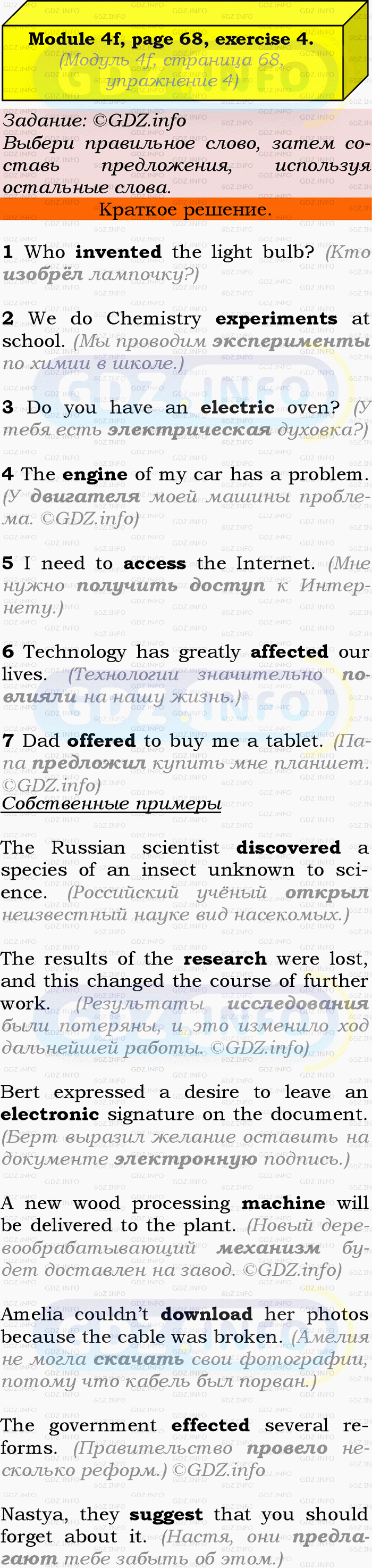 ГДЗ (готовое домашние задание из решебника) по Английскому языку 9 класса авторов Ю.Е. Ваулина, Просвещение, 2010/2019/2023г. на Module 4, Страница 68, Номер 4. 4f English in Use.Условие 2023 г.