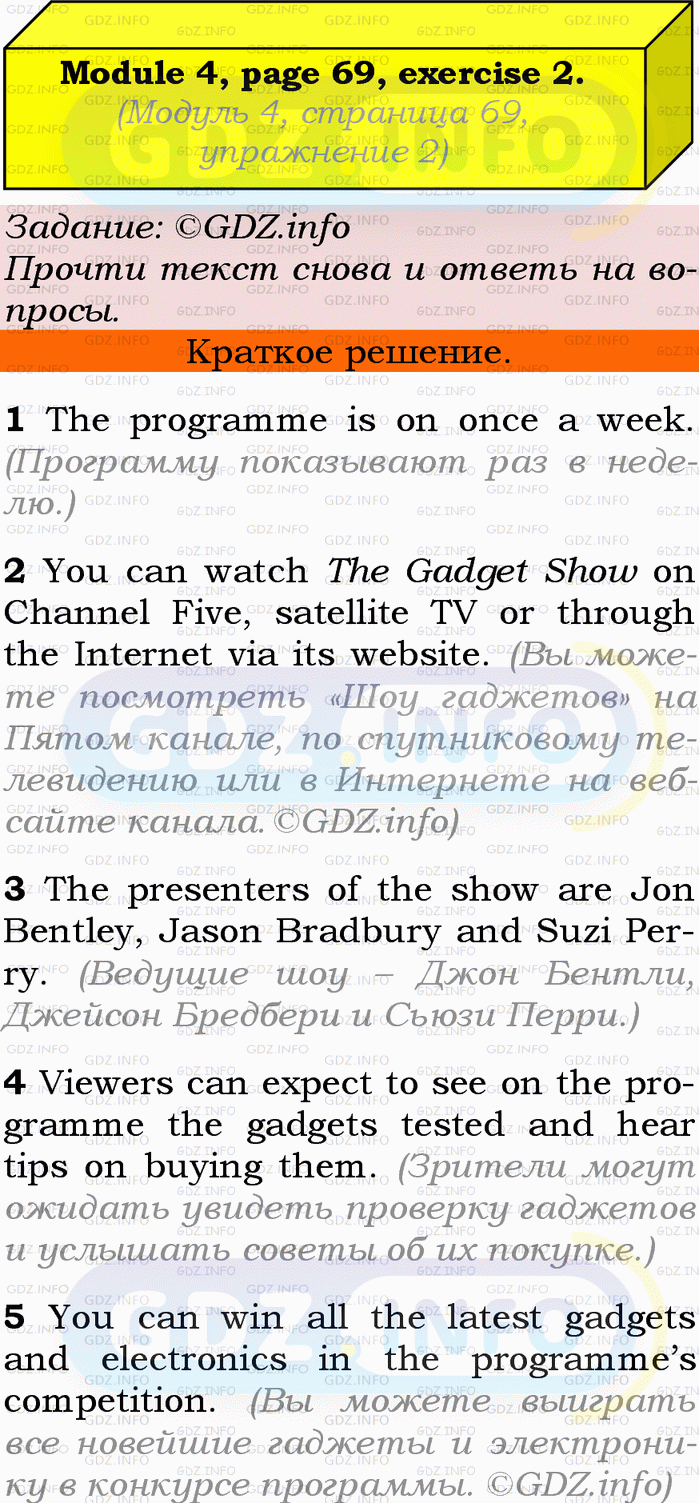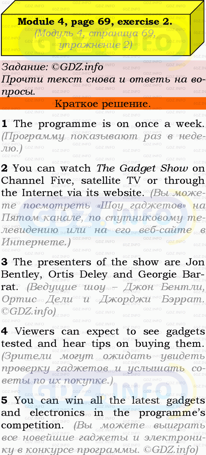 Ответ на Module 4, Страница 69, Номер 2 из ГДЗ по Английскому языку 9 класс: Ваулина (Учебник Spotlight)