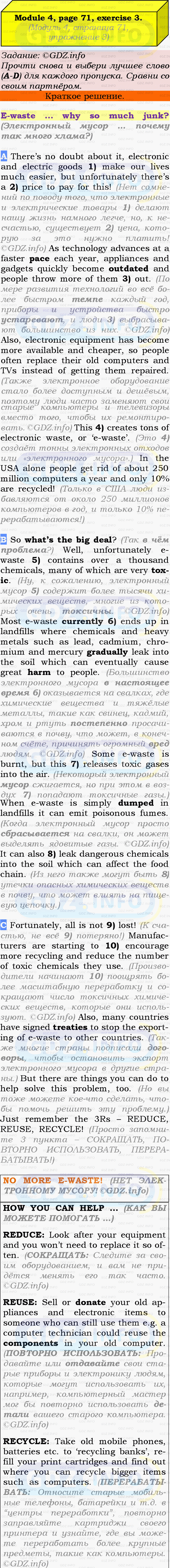 ГДЗ (готовое домашние задание из решебника) по Английскому языку 9 класса авторов Ю.Е. Ваулина, Просвещение, 2010/2019/2023г. на Module 4, Страница 70-71, Номер 3. Going Green 4.Условие 2023 г.