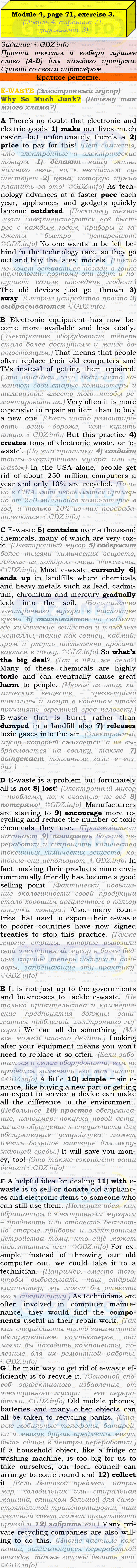Ответ на Module 4, Страница 70-71, Номер 3 из ГДЗ по Английскому языку 9 класс: Ваулина (Учебник Spotlight)