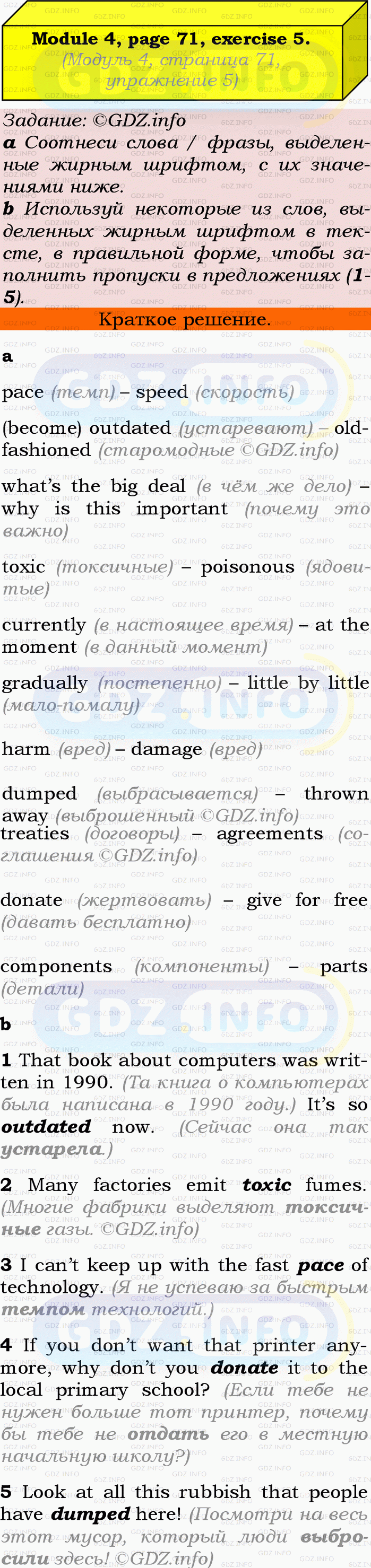 Ответ на Module 4, Страница 70-71, Номер 5 из ГДЗ по Английскому языку 9 класс: Ваулина (Учебник Spotlight)
