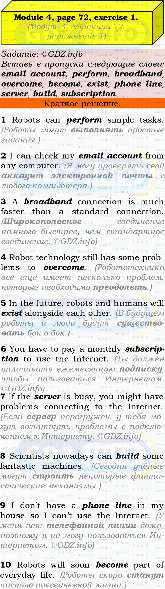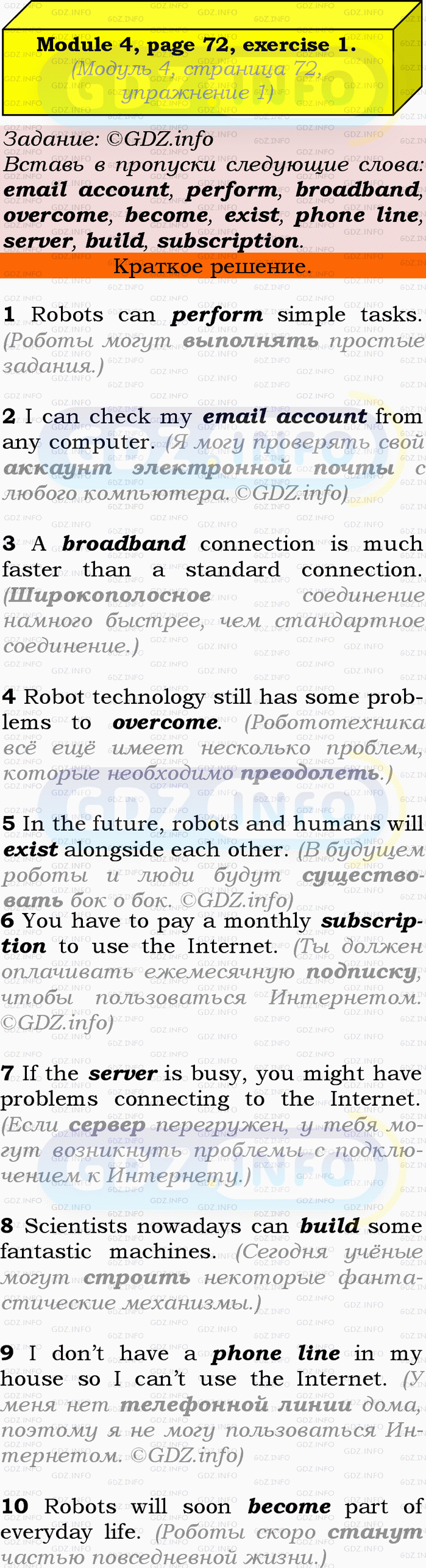 Ответ на Module 4, Страница 72, Номер 1 из ГДЗ по Английскому языку 9 класс: Ваулина (Учебник Spotlight)