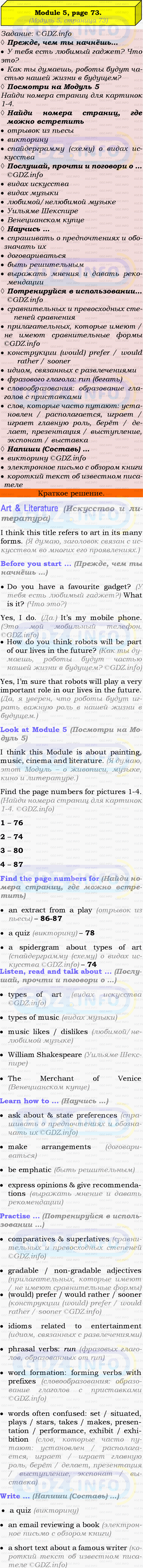 Ответ на Module 5, Страница 73, Art Literature из ГДЗ по Английскому языку 9 класс: Ваулина (Учебник Spotlight)