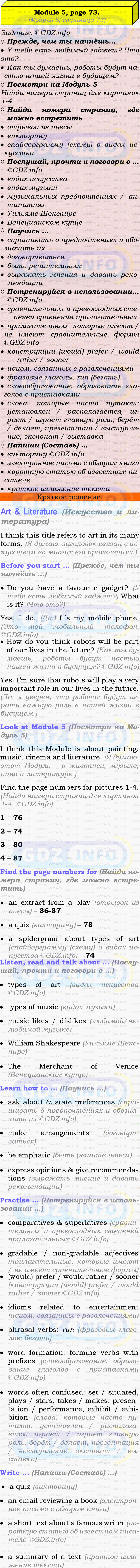 ГДЗ (готовое домашние задание из решебника) по Английскому языку 9 класса авторов Ю.Е. Ваулина, Просвещение, 2010/2019/2023г. на Module 5, Страница 73, Art Literature. Art & Literature.Условие 2023 г.