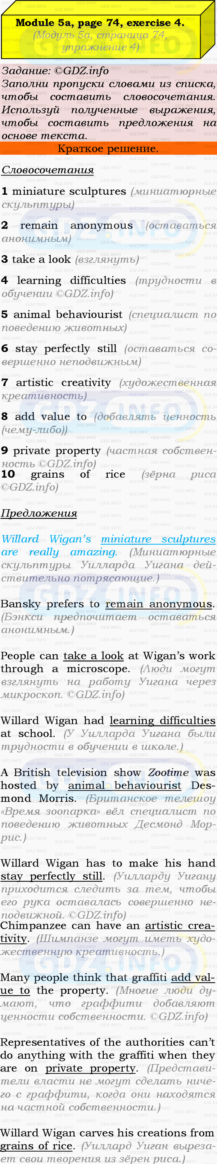Ответ на Module 5, Страница 74-75, Номер 4 из ГДЗ по Английскому языку 9 класс: Ваулина (Учебник Spotlight)