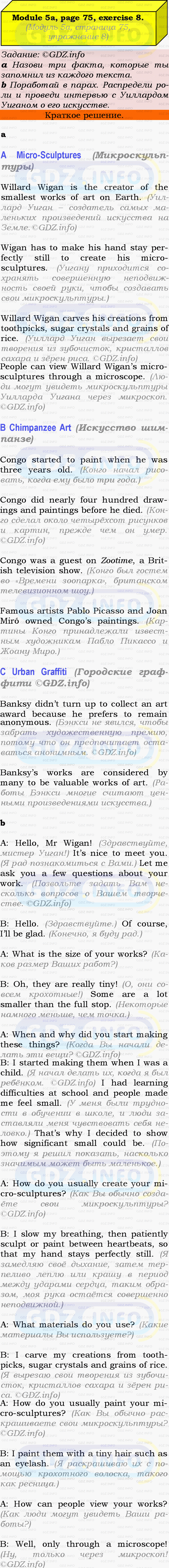 Ответ на Module 5, Страница 74-75, Номер 8 из ГДЗ по Английскому языку 9 класс: Ваулина (Учебник Spotlight)