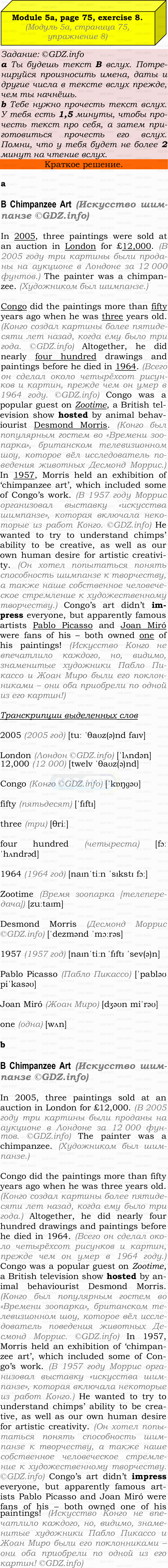 ГДЗ (готовое домашние задание из решебника) по Английскому языку 9 класса авторов Ю.Е. Ваулина, Просвещение, 2010/2019/2023г. на Module 5, Страница 74-75, Номер 8. 5a Reading & Vocabulary.Условие 2023 г.