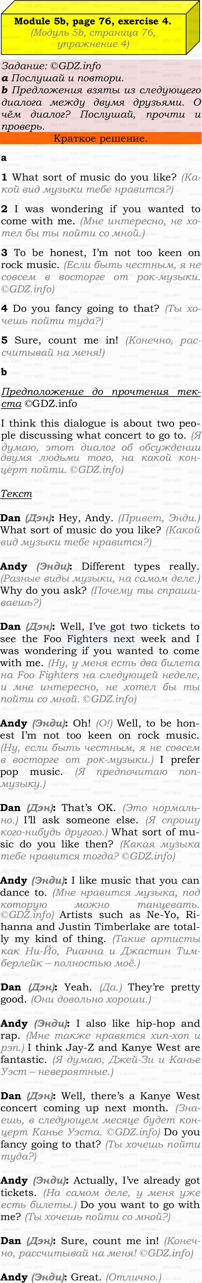 Ответ на Module 5, Страница 76-77, Номер 4 из ГДЗ по Английскому языку 9 класс: Ваулина (Учебник Spotlight)