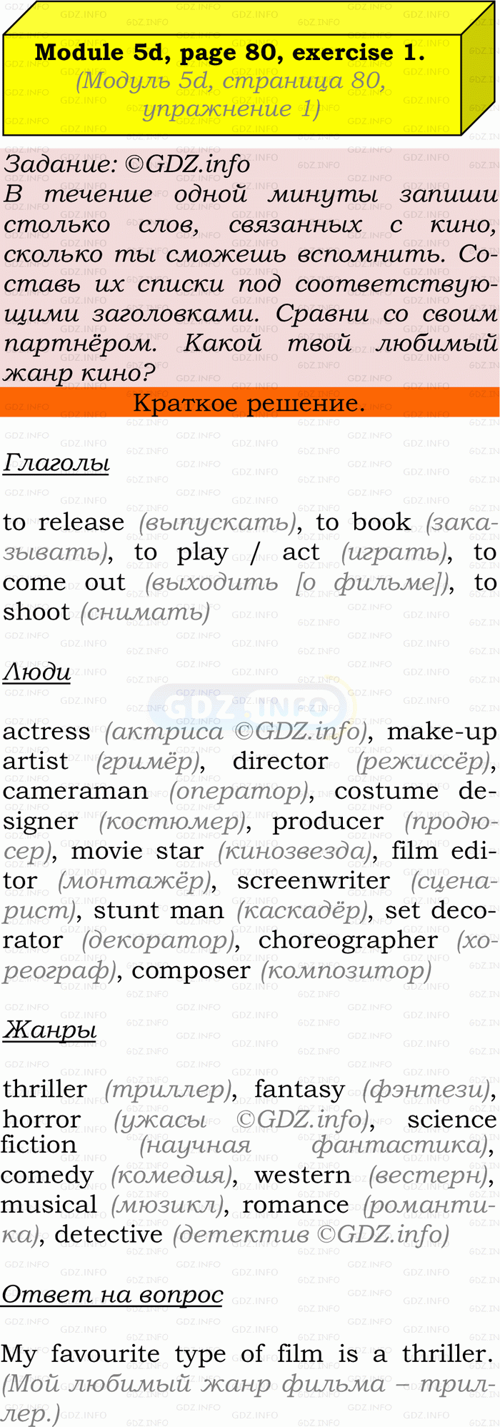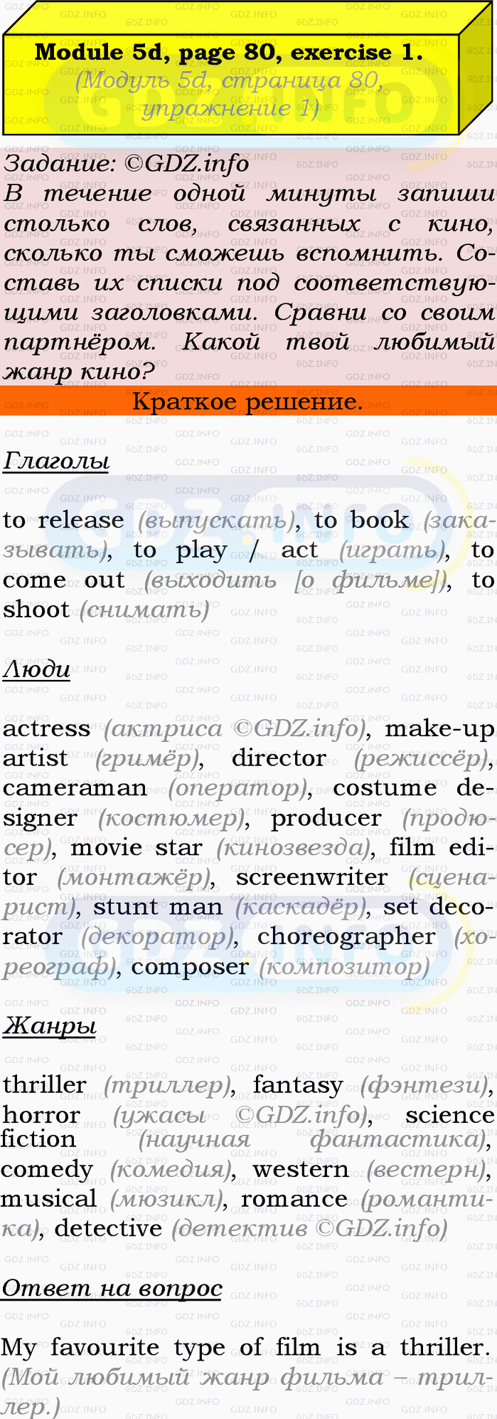 ГДЗ (готовое домашние задание из решебника) по Английскому языку 9 класса авторов Ю.Е. Ваулина, Просвещение, 2010/2019/2023г. на Module 5, Страница 80-81, Номер 1. 5d Vocabulary & Speaking.Условие 2023 г.