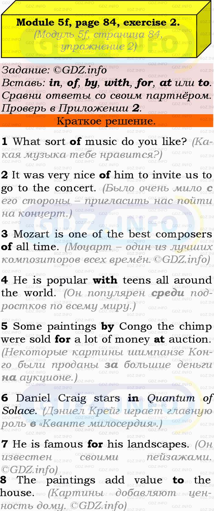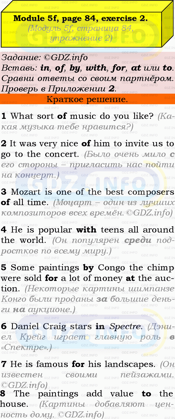 ГДЗ (готовое домашние задание из решебника) по Английскому языку 9 класса авторов Ю.Е. Ваулина, Просвещение, 2010/2019/2023г. на Module 5, Страница 84, Номер 2. 5f English in Use.Условие 2023 г.