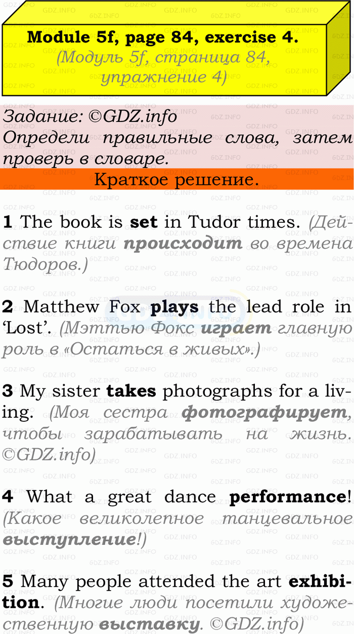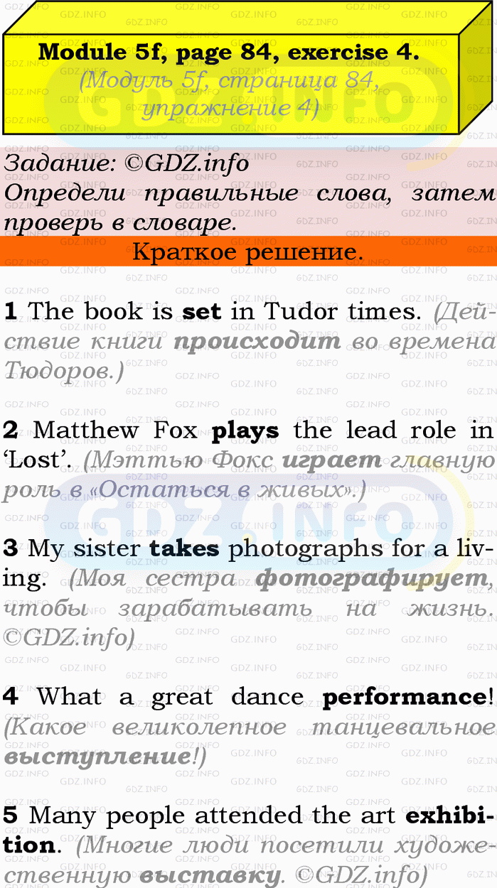Ответ на Module 5, Страница 84, Номер 4 из ГДЗ по Английскому языку 9 класс: Ваулина (Учебник Spotlight)