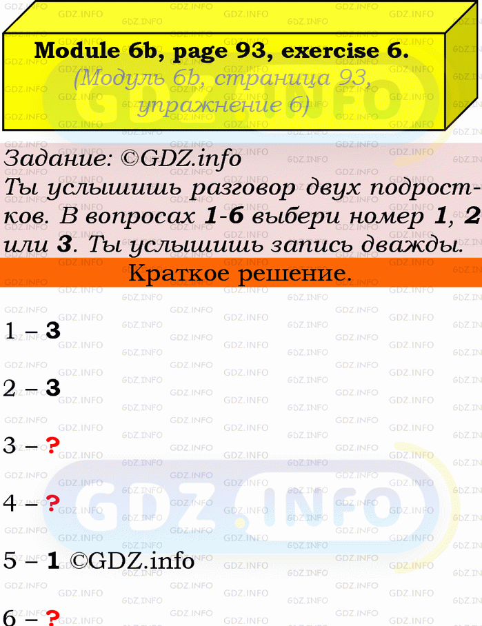 ГДЗ (готовое домашние задание из решебника) по Английскому языку 9 класса авторов Ю.Е. Ваулина, Просвещение, 2010/2019/2023г. на Module 6, Страница 92-93, Номер 6. 6b Listening & Speaking.Условие 2023 г.