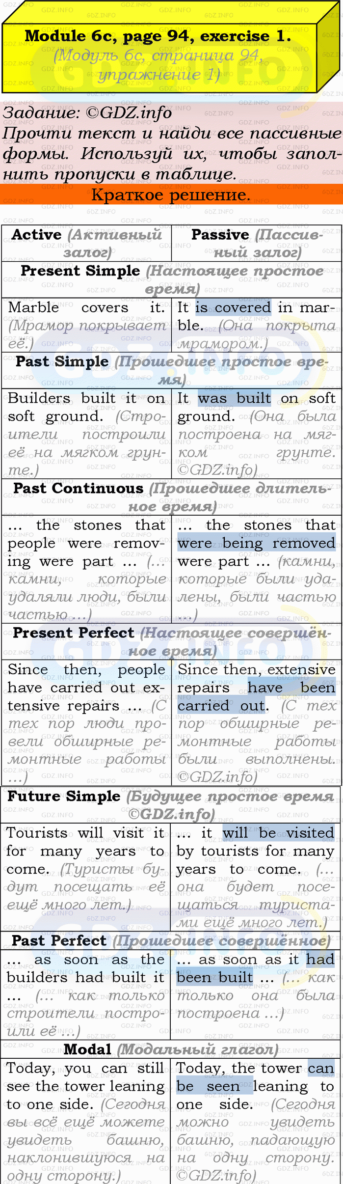 ГДЗ (готовое домашние задание из решебника) по Английскому языку 9 класса авторов Ю.Е. Ваулина, Просвещение, 2010/2019/2023г. на Module 6, Страница 94-95, Номер 1. 6c Grammar in Use.Условие 2023 г.