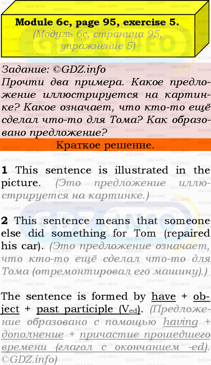 5 Read the two examples. Which sentence is illustrated in the picture? Which means that someone else did something for Tom? How is the sentence formed?