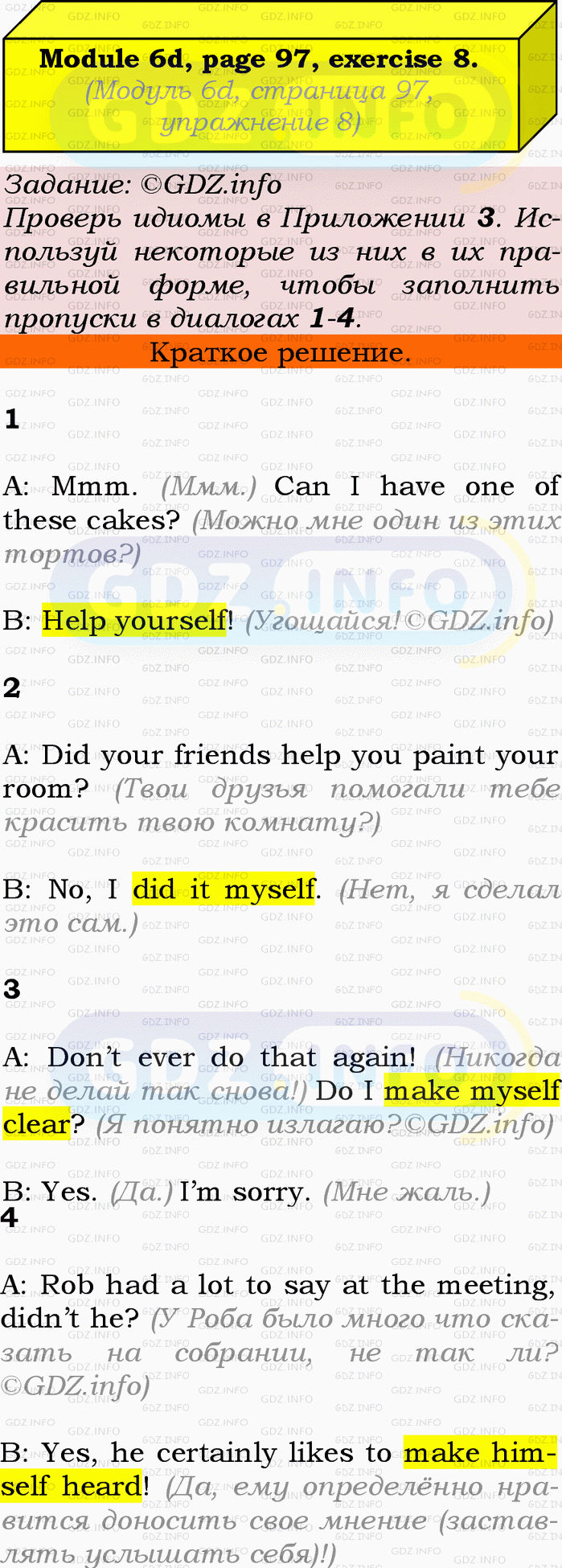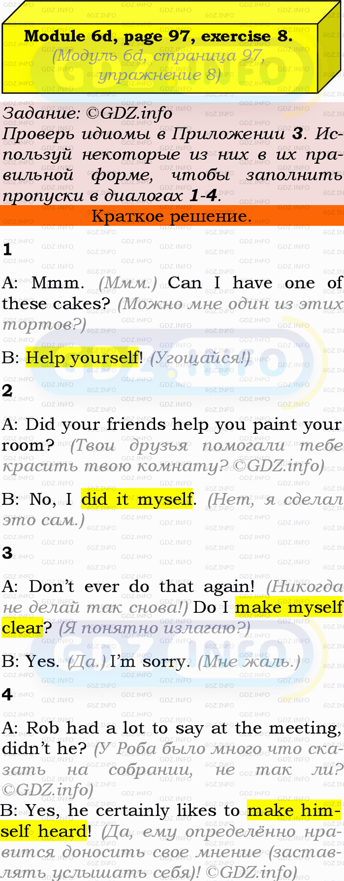 ГДЗ (готовое домашние задание из решебника) по Английскому языку 9 класса авторов Ю.Е. Ваулина, Просвещение, 2010/2019/2023г. на Module 6, Страница 96-97, Номер 8. 6d Vocabulary & Speaking.Условие 2023 г.