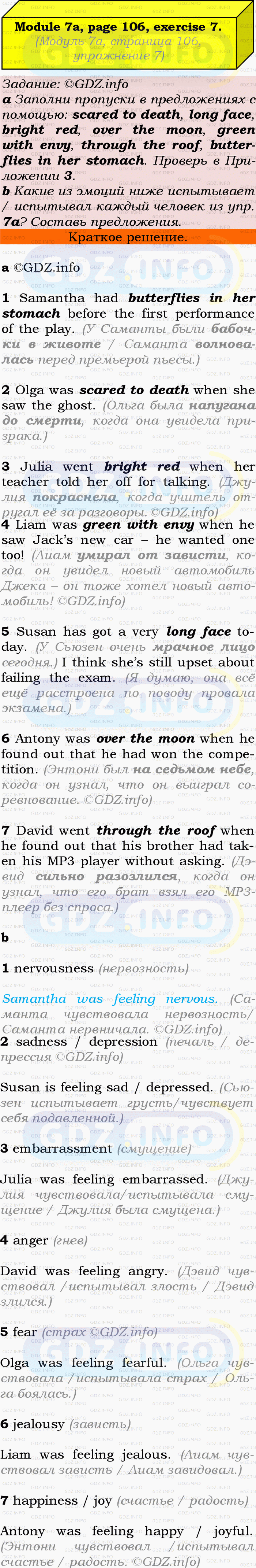 Ответ на Module 7, Страница 106-107, Номер 7 из ГДЗ по Английскому языку 9 класс: Ваулина (Учебник Spotlight)