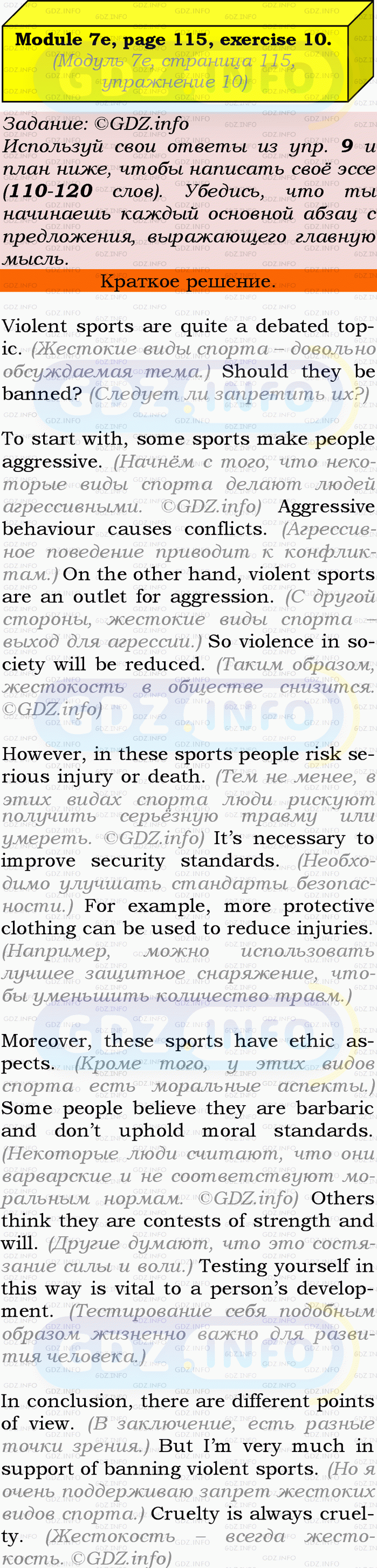 ГДЗ (готовое домашние задание из решебника) по Английскому языку 9 класса авторов Ю.Е. Ваулина, Просвещение, 2010/2019/2023г. на Module 7, Страница 114-115, Номер 10. 7e Writing Skills.Условие 2023 г.