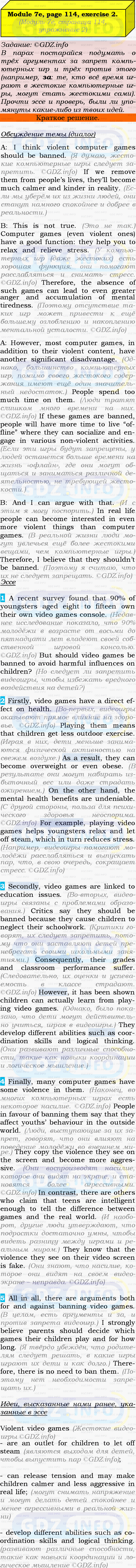ГДЗ (готовое домашние задание из решебника) по Английскому языку 9 класса авторов Ю.Е. Ваулина, Просвещение, 2010/2019/2023г. на Module 7, Страница 114-115, Номер 2. 7e Writing Skills.Условие 2023 г.