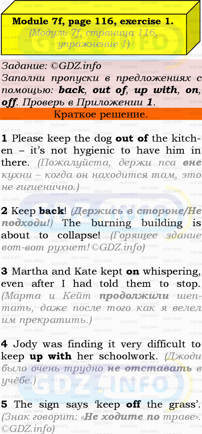 ГДЗ (готовое домашние задание из решебника) по Английскому языку 9 класса авторов Ю.Е. Ваулина, Просвещение, 2010/2019/2023г. на Module 7, Страница 116, Номер 1. 7f English in Use.Условие 2023 г.