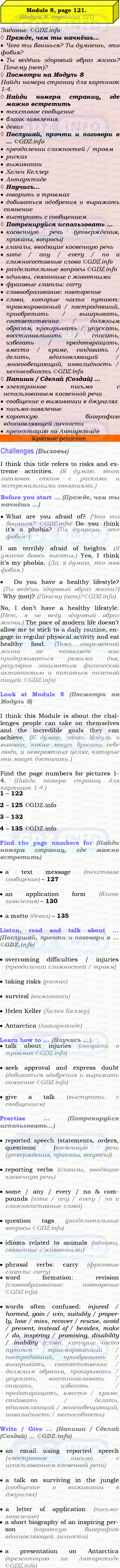 ГДЗ (готовое домашние задание из решебника) по Английскому языку 9 класса авторов Ю.Е. Ваулина, Просвещение, 2010/2019/2023г. на Module 8, Страница 121, Challenges. Challenges.Условие 2023 г.