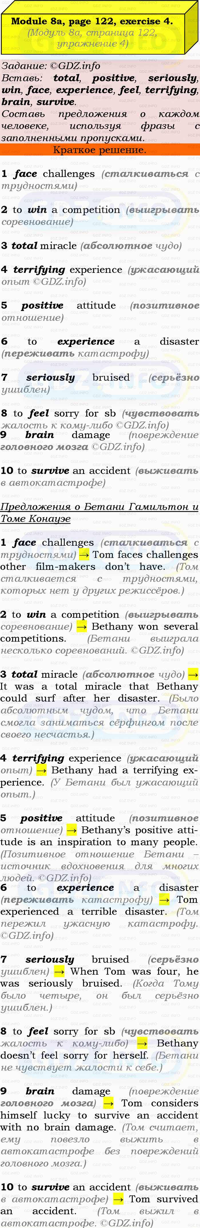 Ответ на Module 8, Страница 122-123, Номер 4 из ГДЗ по Английскому языку 9 класс: Ваулина (Учебник Spotlight)