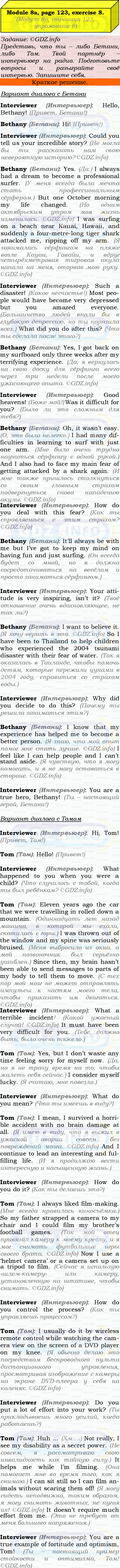 Ответ на Module 8, Страница 122-123, Номер 8 из ГДЗ по Английскому языку 9 класс: Ваулина (Учебник Spotlight)