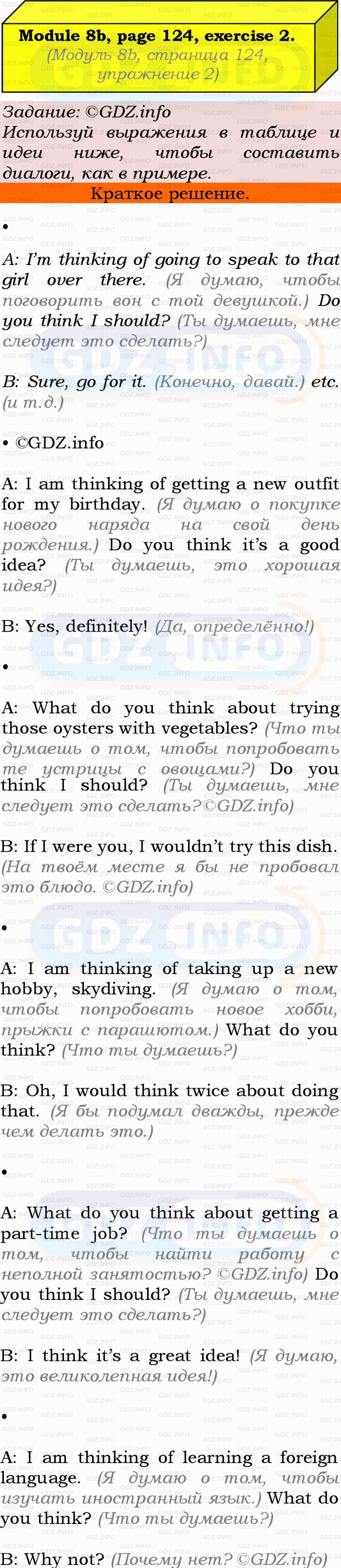 Ответ на Module 8, Страница 124-125, Номер 2 из ГДЗ по Английскому языку 9 класс: Ваулина (Учебник Spotlight)