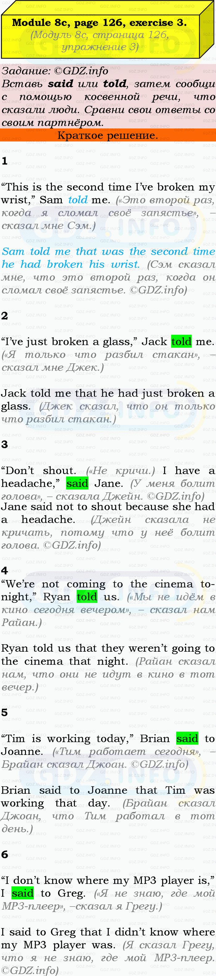 ГДЗ (готовое домашние задание из решебника) по Английскому языку 9 класса авторов Ю.Е. Ваулина, Просвещение, 2010/2019/2023г. на Module 8, Страница 126-127, Номер 3. 8c Grammar in Use.Условие 2023 г.