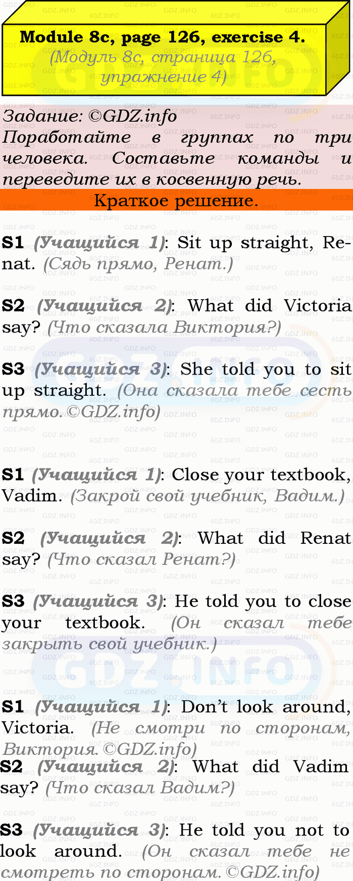 ГДЗ (готовое домашние задание из решебника) по Английскому языку 9 класса авторов Ю.Е. Ваулина, Просвещение, 2010/2019/2023г. на Module 8, Страница 126-127, Номер 4. 8c Grammar in Use.Условие 2023 г.