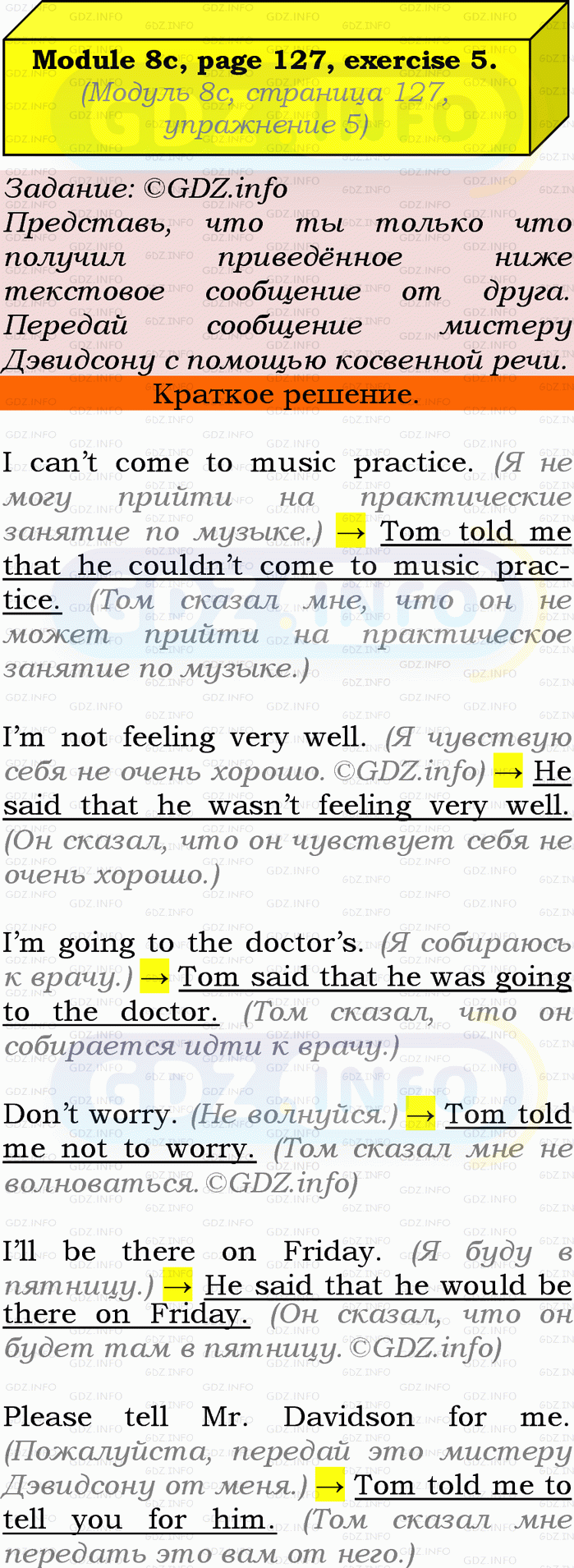 ГДЗ (готовое домашние задание из решебника) по Английскому языку 9 класса авторов Ю.Е. Ваулина, Просвещение, 2010/2019/2023г. на Module 8, Страница 126-127, Номер 5. 8c Grammar in Use.Условие 2023 г.