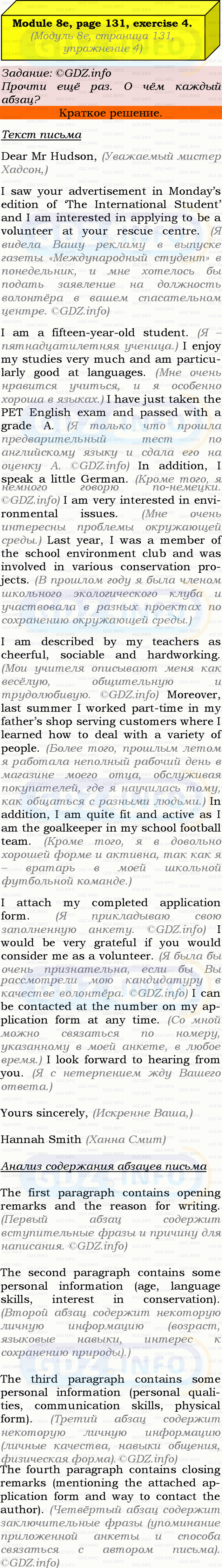 Ответ на Module 8, Страница 130-131, Номер 4 из ГДЗ по Английскому языку 9 класс: Ваулина (Учебник Spotlight)