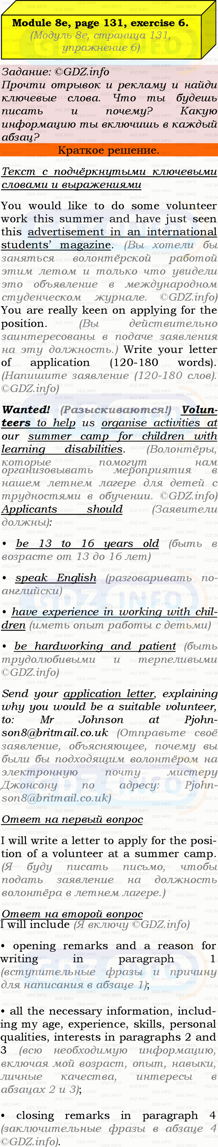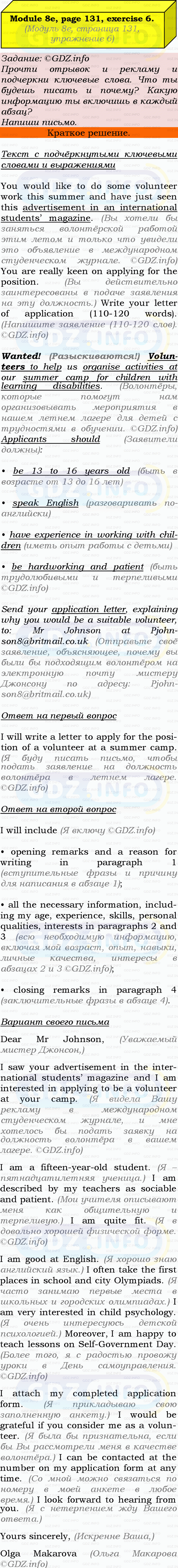 ГДЗ (готовое домашние задание из решебника) по Английскому языку 9 класса авторов Ю.Е. Ваулина, Просвещение, 2010/2019/2023г. на Module 8, Страница 130-131, Номер 6. 8e Writing Skills.Условие 2023 г.