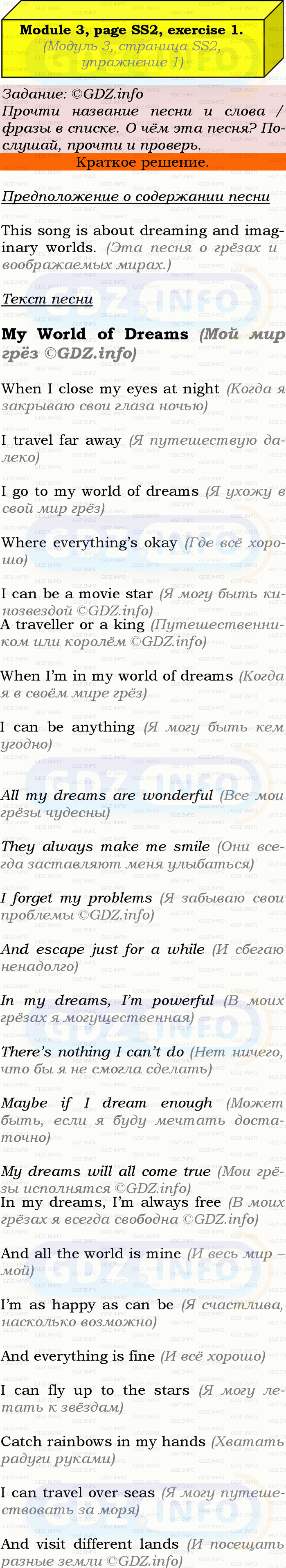 ГДЗ (готовое домашние задание из решебника) по Английскому языку 9 класса авторов Ю.Е. Ваулина, Просвещение, 2010/2019/2023г. на Song Sheets, Module 3, Номер 1. Страница SS2.Условие 2023 г.