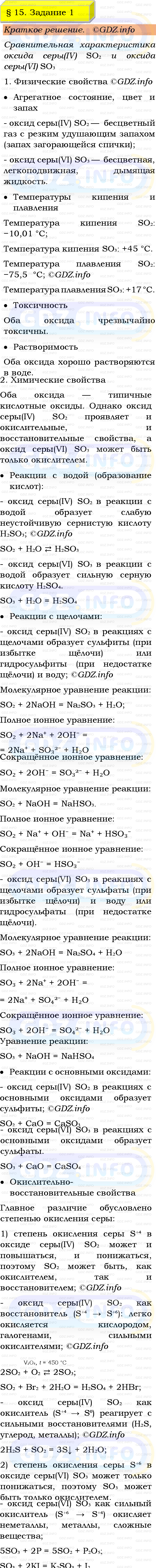 ГДЗ (готовое домашние задание из решебника) по Химии 9 класса авторов Габриелян Остроумов, Сладков. Просвещение, 2023-2025г на Номер №1, § 15. Кислородные соединения серы.