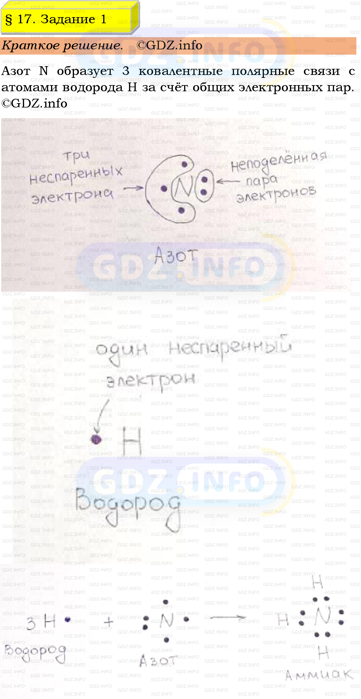 ГДЗ (готовое домашние задание из решебника) по Химии 9 класса авторов Габриелян Остроумов, Сладков. Просвещение, 2023-2025г на Номер №1, § 17. Аммиак. Соли аммония.