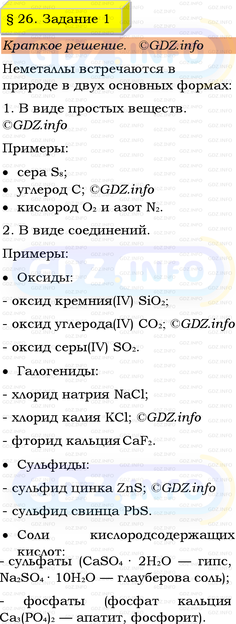 ГДЗ (готовое домашние задание из решебника) по Химии 9 класса авторов Габриелян Остроумов, Сладков. Просвещение, 2023-2025г на Номер №1, § 26. Получение неметаллов.